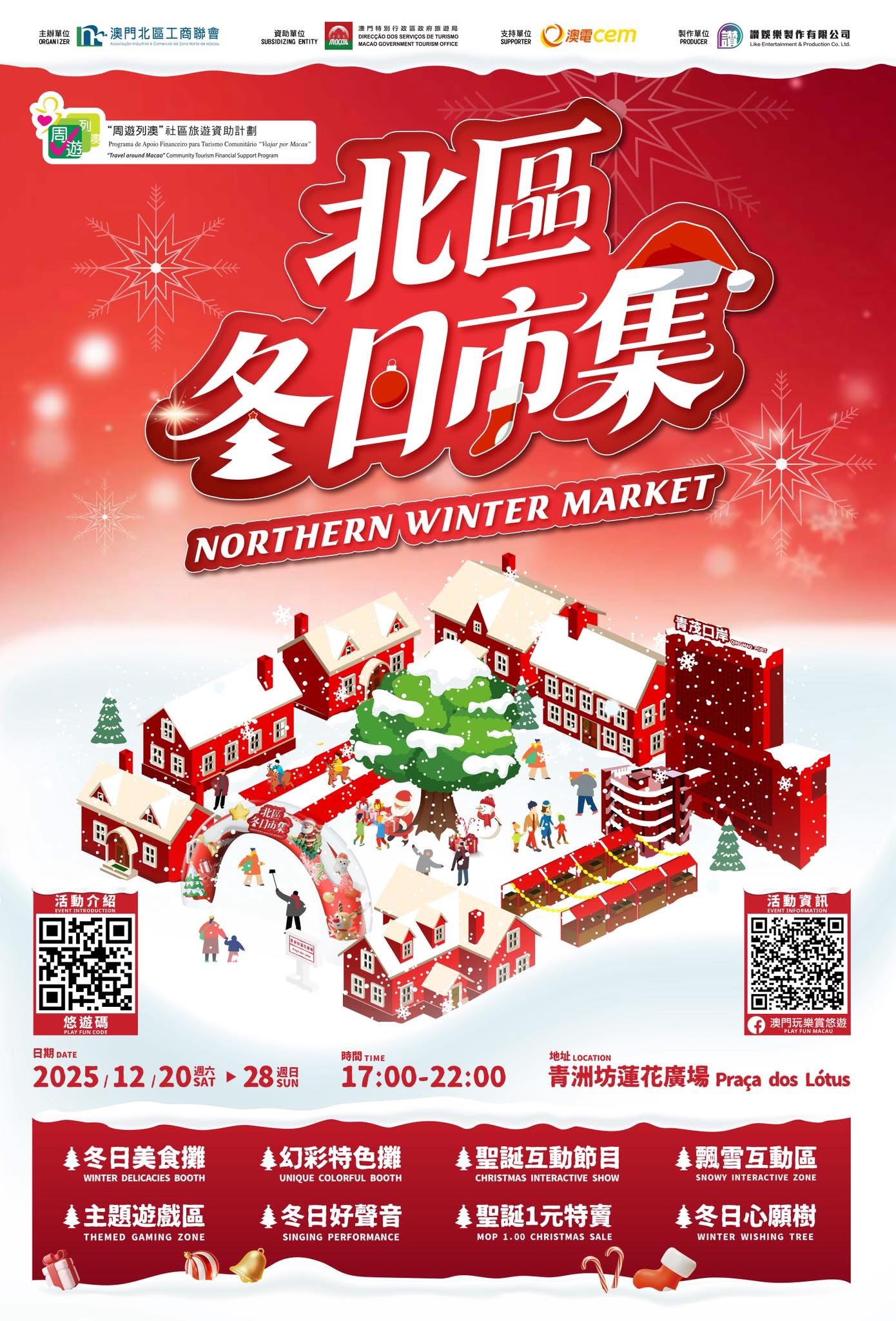 Christmas 去邊行街打卡好?由澳門北區工商聯會主辦嘅「2025 北區冬日市集」就係你今個冬日嘅首選!12月20日至28日,每日下午5點至晚上10點,喺澳門青州坊蓮花廣場變身成為充滿節日氣氛嘅聖誕小鎮,燈光、音樂、飄雪一次過齊晒