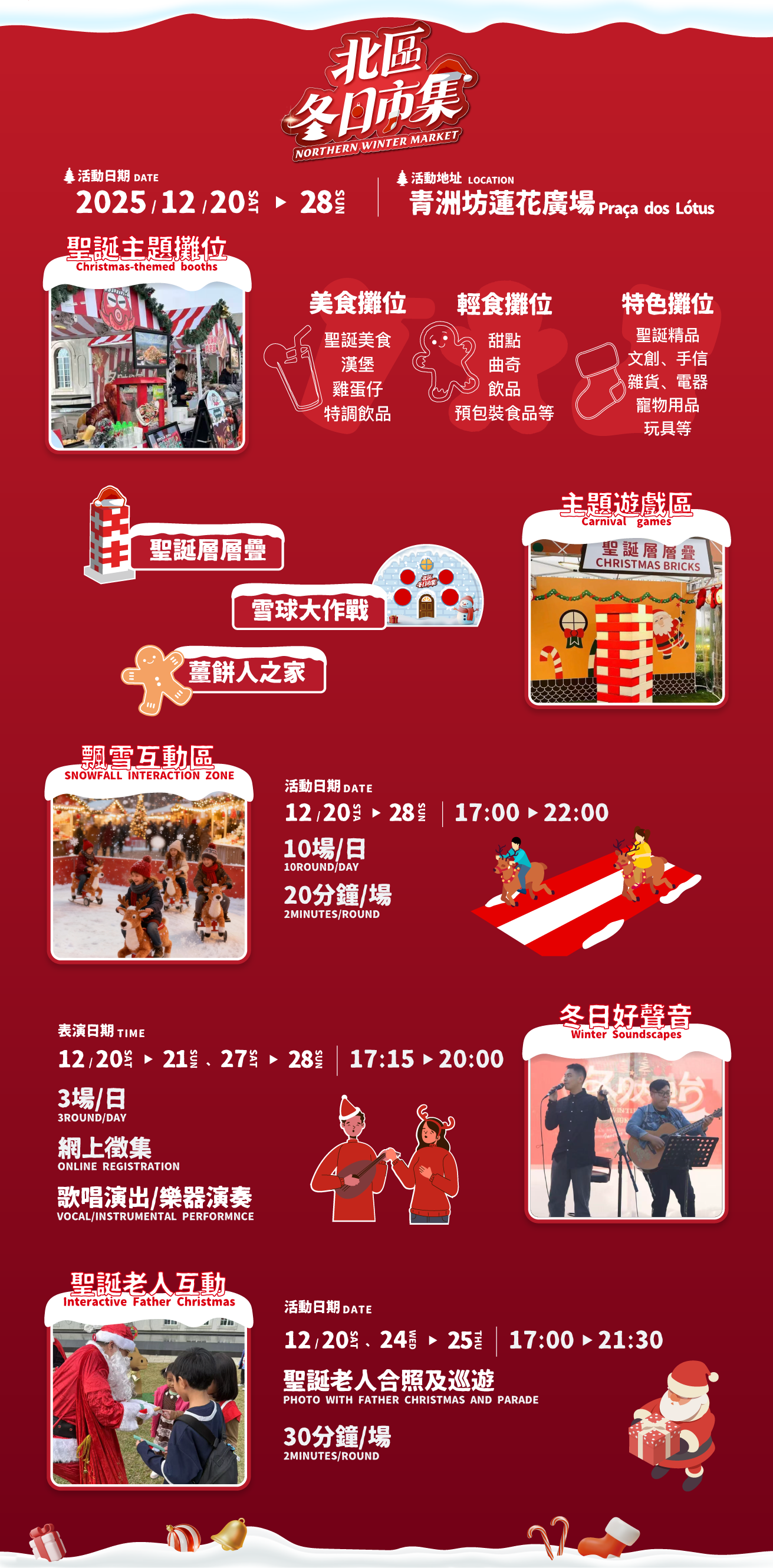 Christmas 去邊行街打卡好?由澳門北區工商聯會主辦嘅「2025 北區冬日市集」就係你今個冬日嘅首選!12月20日至28日,每日下午5點至晚上10點,喺澳門青州坊蓮花廣場變身成為充滿節日氣氛嘅聖誕小鎮,燈光、音樂、飄雪一次過齊晒